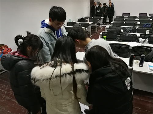 活动在轻松愉快的氛围中开始,首先副班长杨波对本次活动的主题和环节做了一个简单介绍,接下来便进行第一个游戏环节——牙签接力。游戏规则是每队十名成员,每个成员通过手中的一根牙签将订书针传递给下一位队员,先传递完五枚订书针的小组获胜,开始接力前,可以先将订书针折叠一次以便传递。在清楚地理解了游戏规则之后,自动分好队的两队队员便开始积极地出谋划策,并尝试用不同的折叠方式使订书钉能稳稳地挂在牙签上,唐求老师也主动要求加入同学们的队伍。随着一声计时开始,两边同学都争分夺秒地将订书针串了起来,后面的同学紧张地盯着前面的队员,而前排的同学有的小心翼翼不敢有一丝大动作,有的稳稳当当、快速麻利,有的闲下来的队员试图加油呐喊来给对方增加干扰,气氛渐渐达到高潮。最终一组同学通过默契的配合和对方的失误成功获得比赛的胜利。