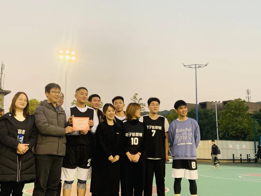 党委副书记陈军老师、硕士研究生辅导员王慧祥老师以及硕士生2021级辅导员张夏伊维老师为本次“南瑞继保”杯篮球赛的冠军、亚军、季军得主颁奖。冠军为电气工程2班,亚军为电子信息1班,季军为电气工程1班。