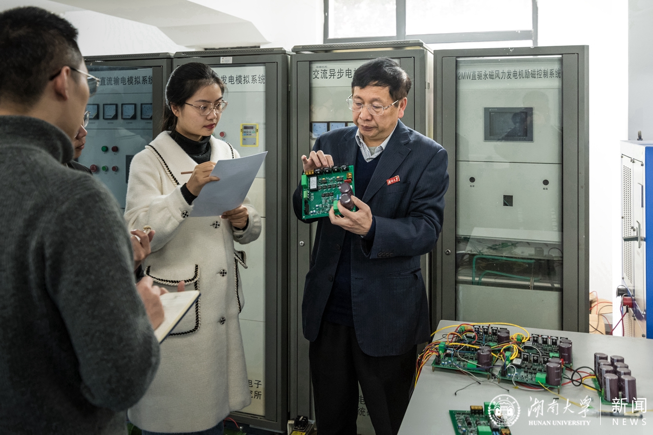 一台公社里的废旧拖拉机,引发了少年黄守道对电机技术的强烈兴趣,自此结下与电机的不解之缘;怀抱着将科研与教学结合的愿景,毕业工作13年后已过而立之年的黄守道重返湖大校园,自此潜心科研、教书育人;从风能到水电,从陆地到半空,他将一生的精力都奉献在电气工程的科技革命中。他主持完成的“大型低速高效直驱永磁风力发电机关键技术及应用”项目荣获国家技术发明奖二等奖。而今,两鬓染霜的黄守道仍锚定目标,誓将科技创新的蓝图绘到底。